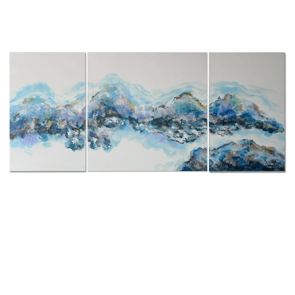 - Dimensions: (2) side paintings are 20 in by 32 in; (1) center painting is 32 in by 32 in