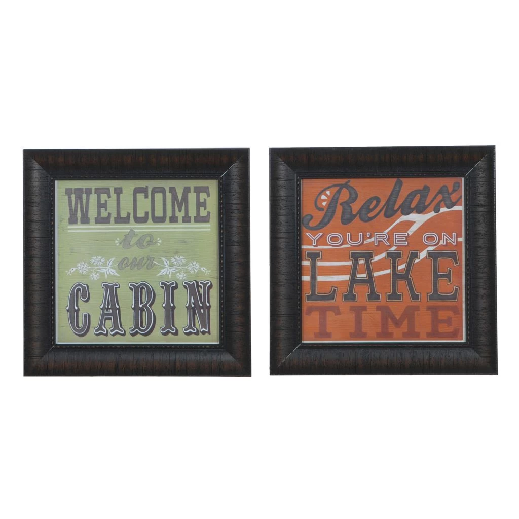 - Wall decorations come in a pair, one says: Welcome to our Cabin, the other says: Relax You’re on Lake Time