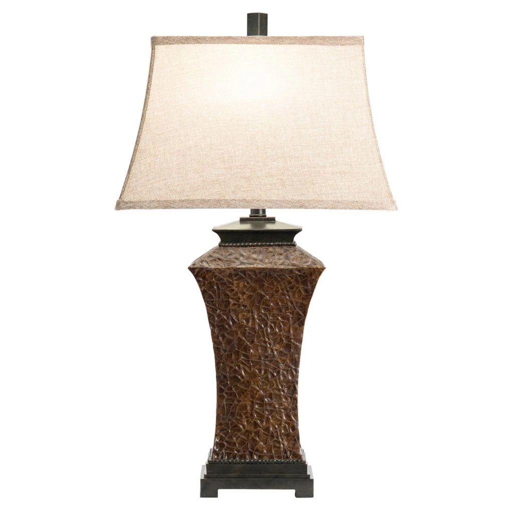 - Table lamp features a versatile crackle brown finish to seamlessly match any home decor