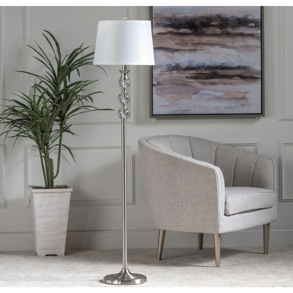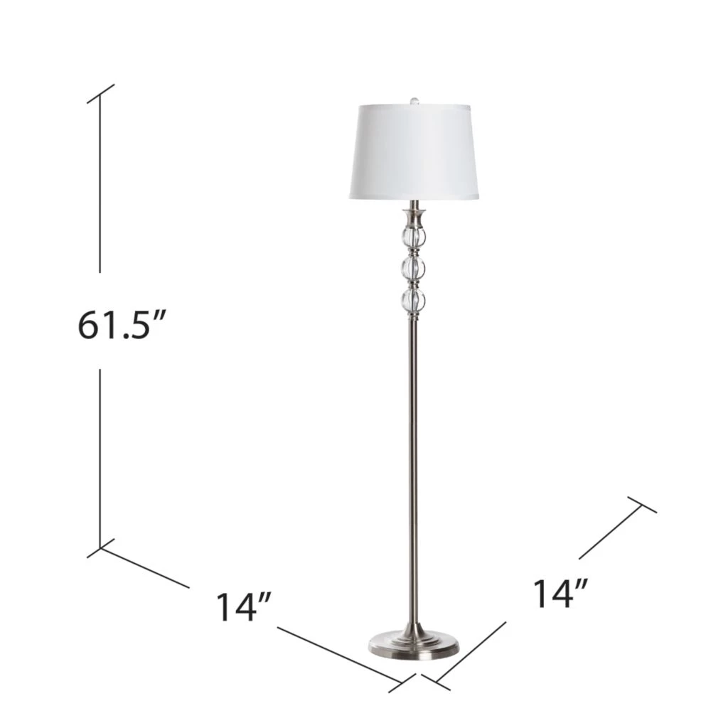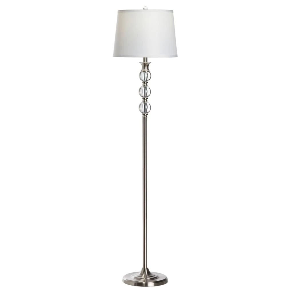 - Floor lamp is made with a sleek nickel brushed steel finish