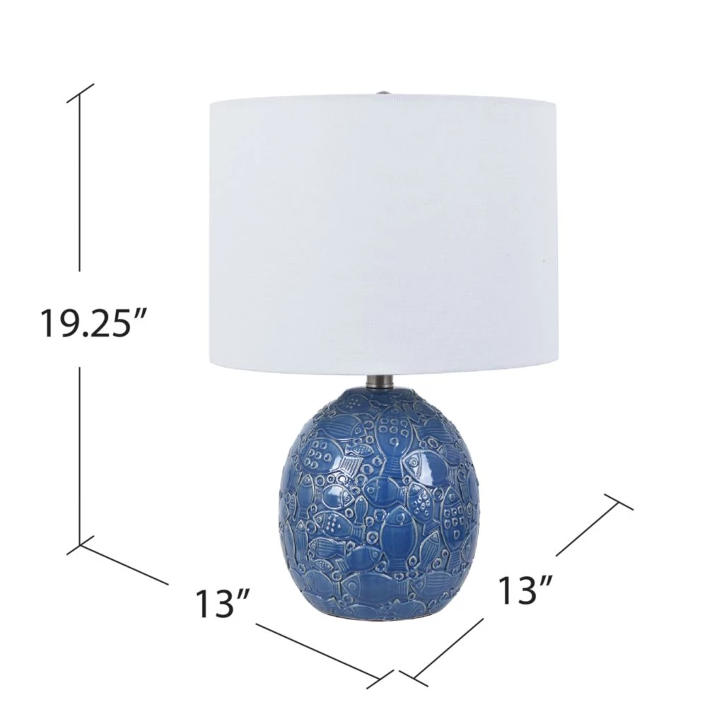 - Costal fish design adds a nautical look to this table lamp