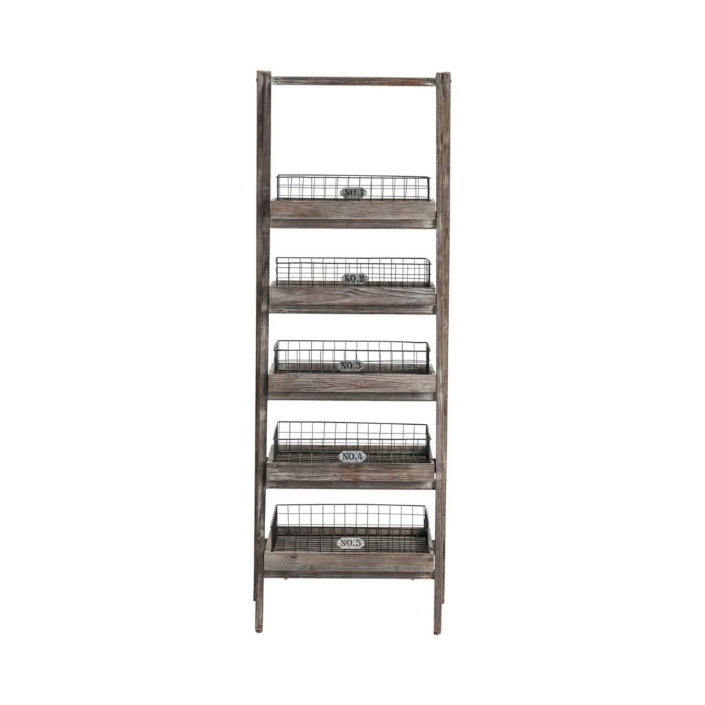 Crestview Collection Hastings 5-Tier Angled Etagere Storage Shelf with Removable Metal Baskets, Charcoal, CVFZR3587