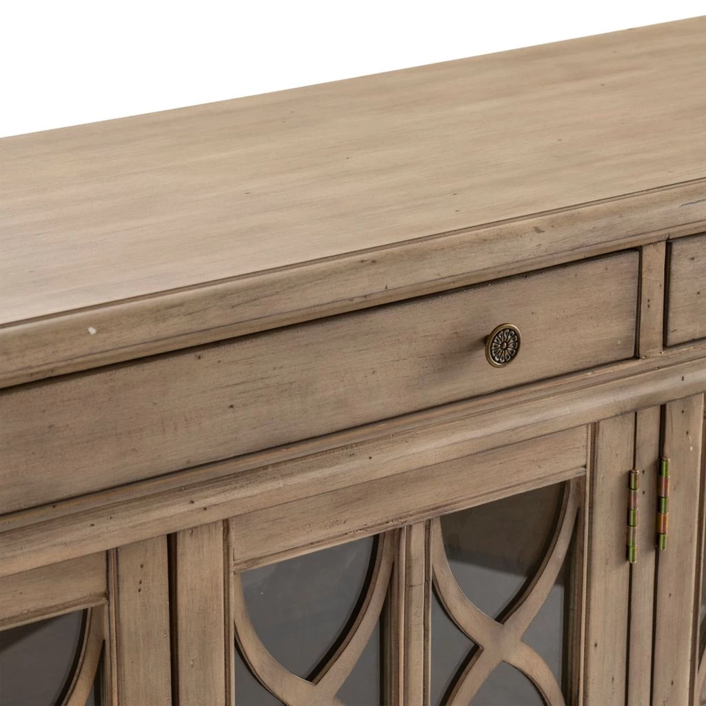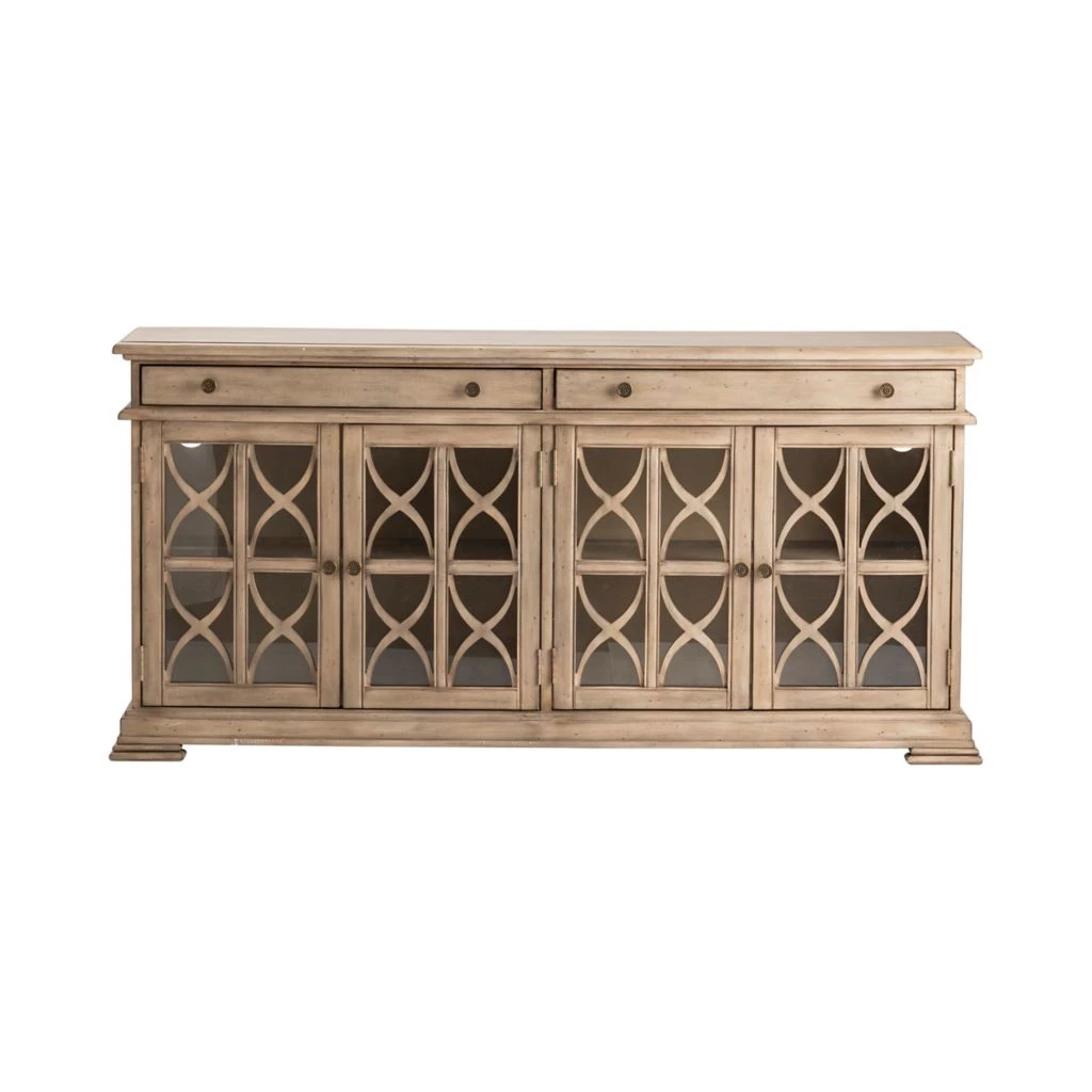 Crestview Collection Hawthorne Estate 2 Drawer 4 Door Fretwork Sideboard Brushed Wheat Finish, CVFVR8052