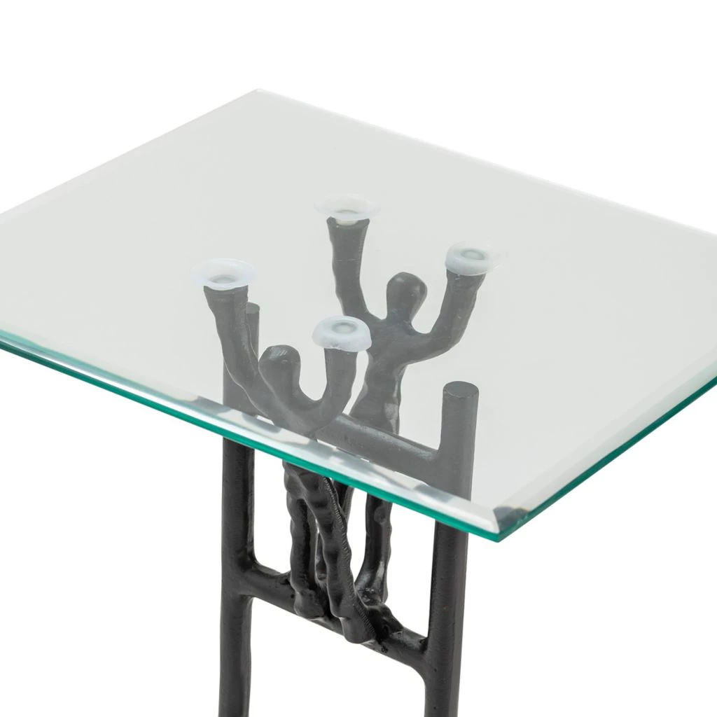 14 x 16 x 23 in. Helping Hands Working Together Accent Table is made of Black Aluminum with glass