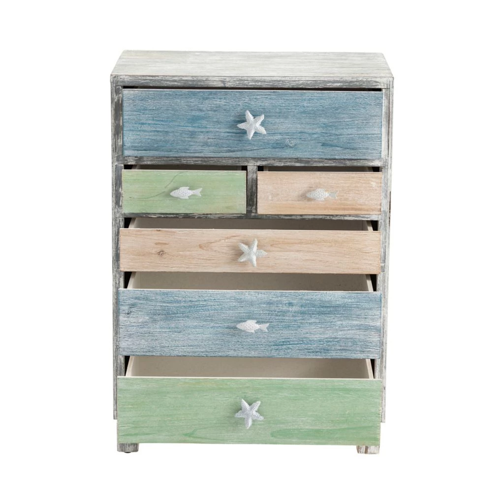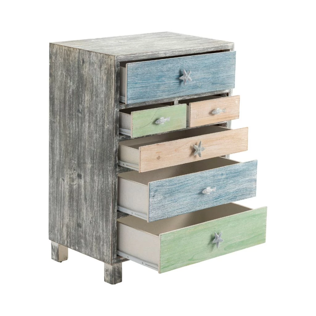 22x14x31 Key West Grey Driftwood And Multi Color Nautical 6 Drawer Chest