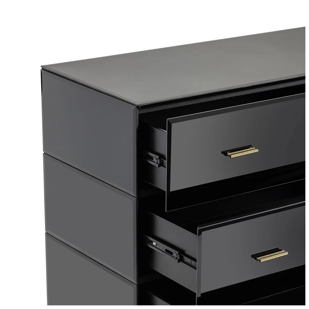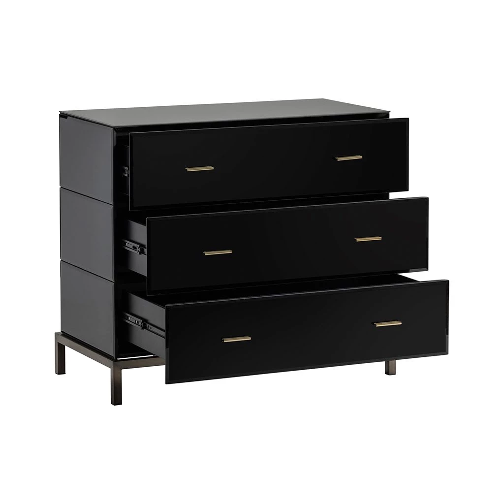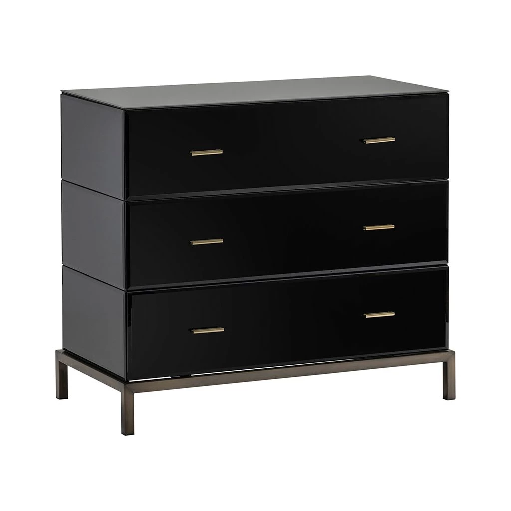 Crestview Collection Mercury Black Glass and Antique Brass 3 Drawer Chest, CVFZR1471