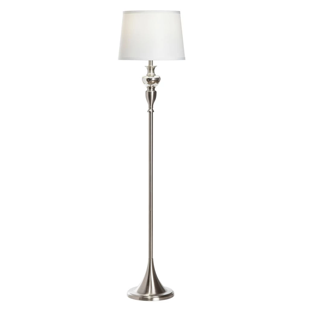 - Floor lamp features a versatile brushed nickel finish to match any home decor