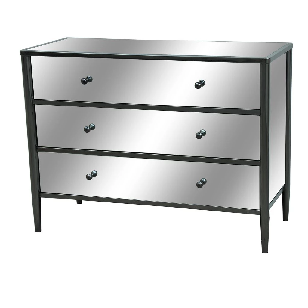 Crestview Collection Midnight Black Nickel Metal and Mirror Chest, 3-Drawer, CVFZR2329