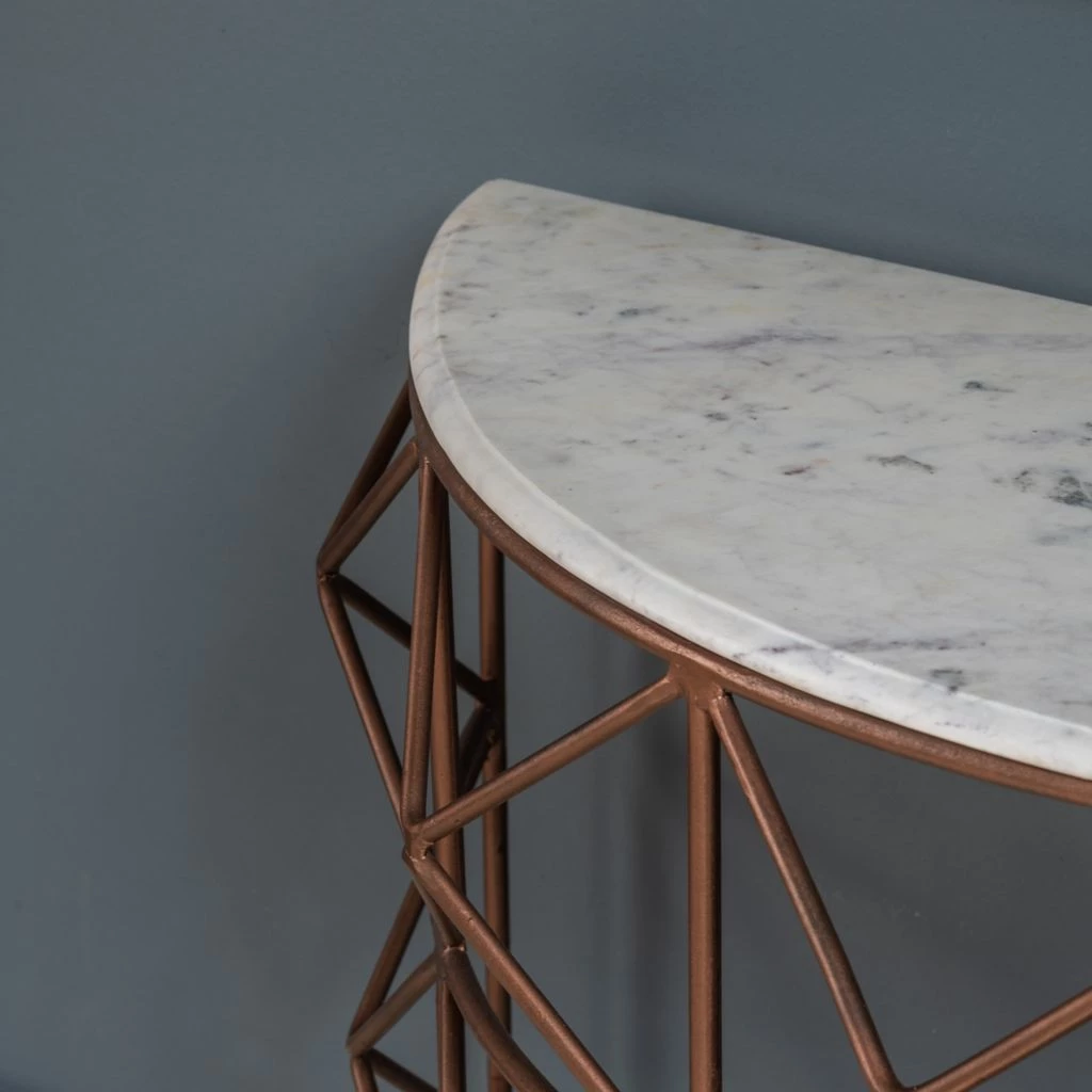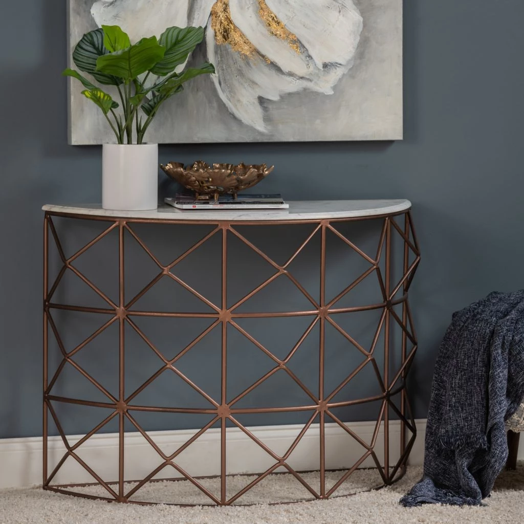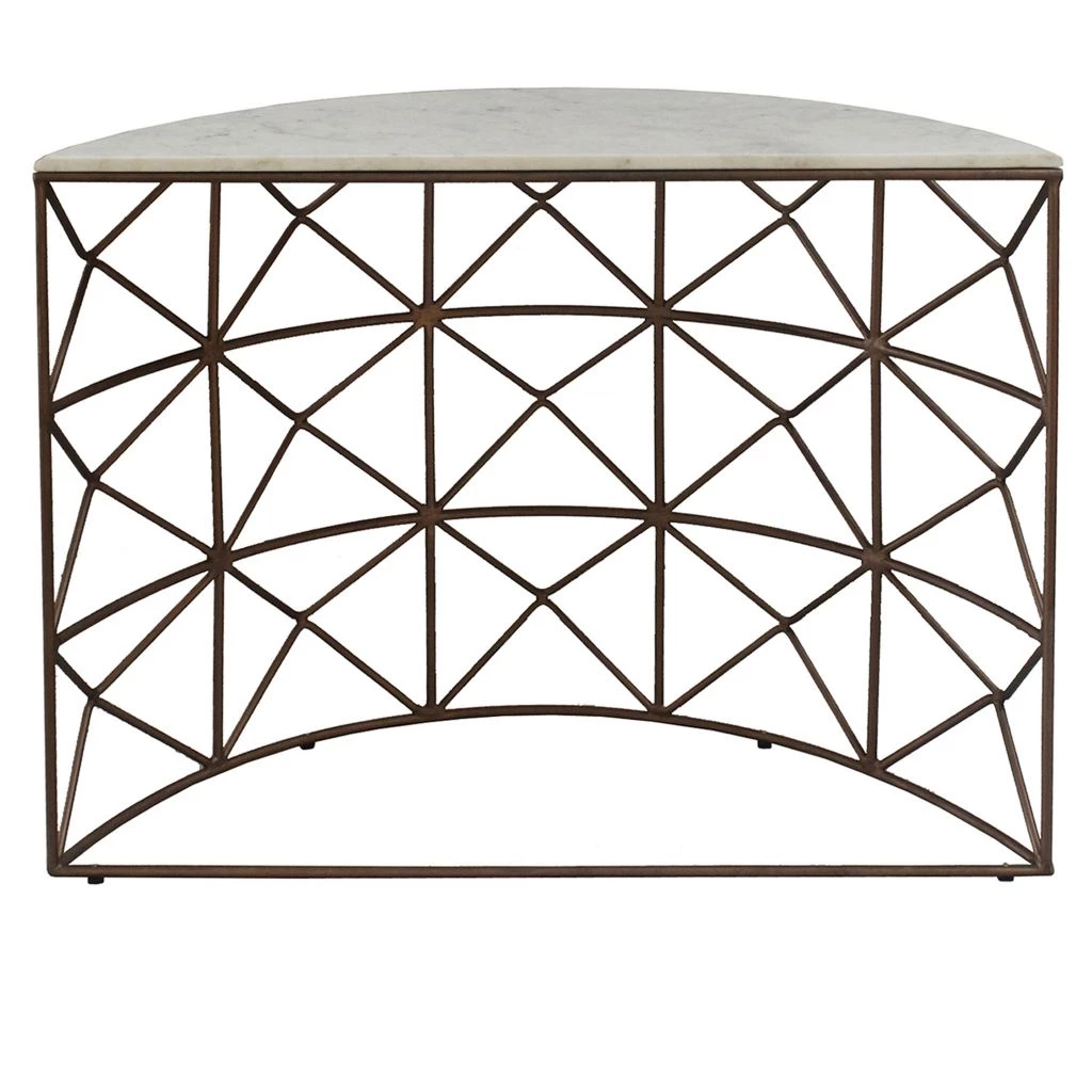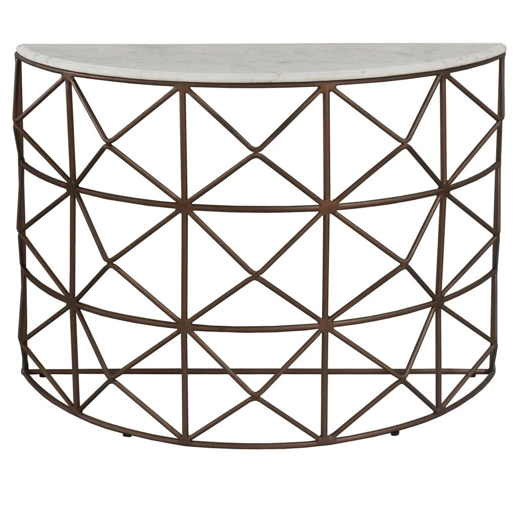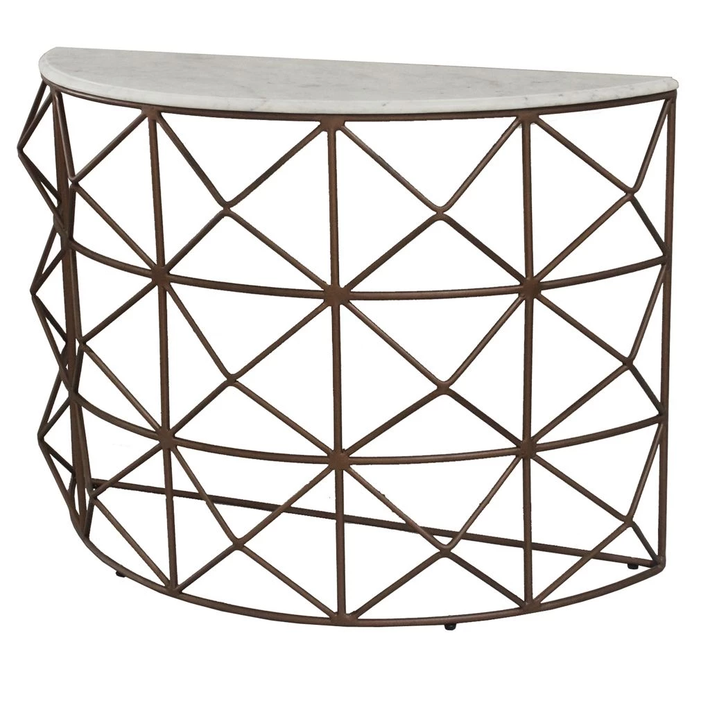 Crestview Collection Raina Marble and Metal Half Round Console, EVFNR1146
