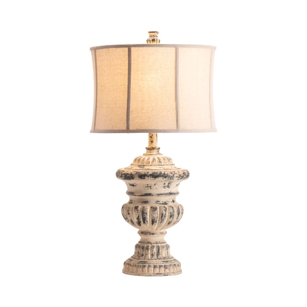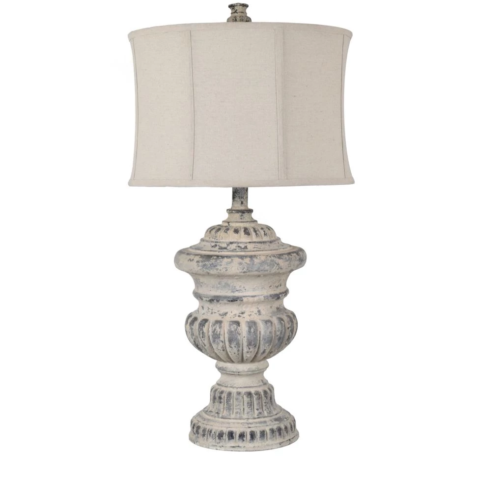 - Weathered finish of this resin lamp makes it a perfect accent piece