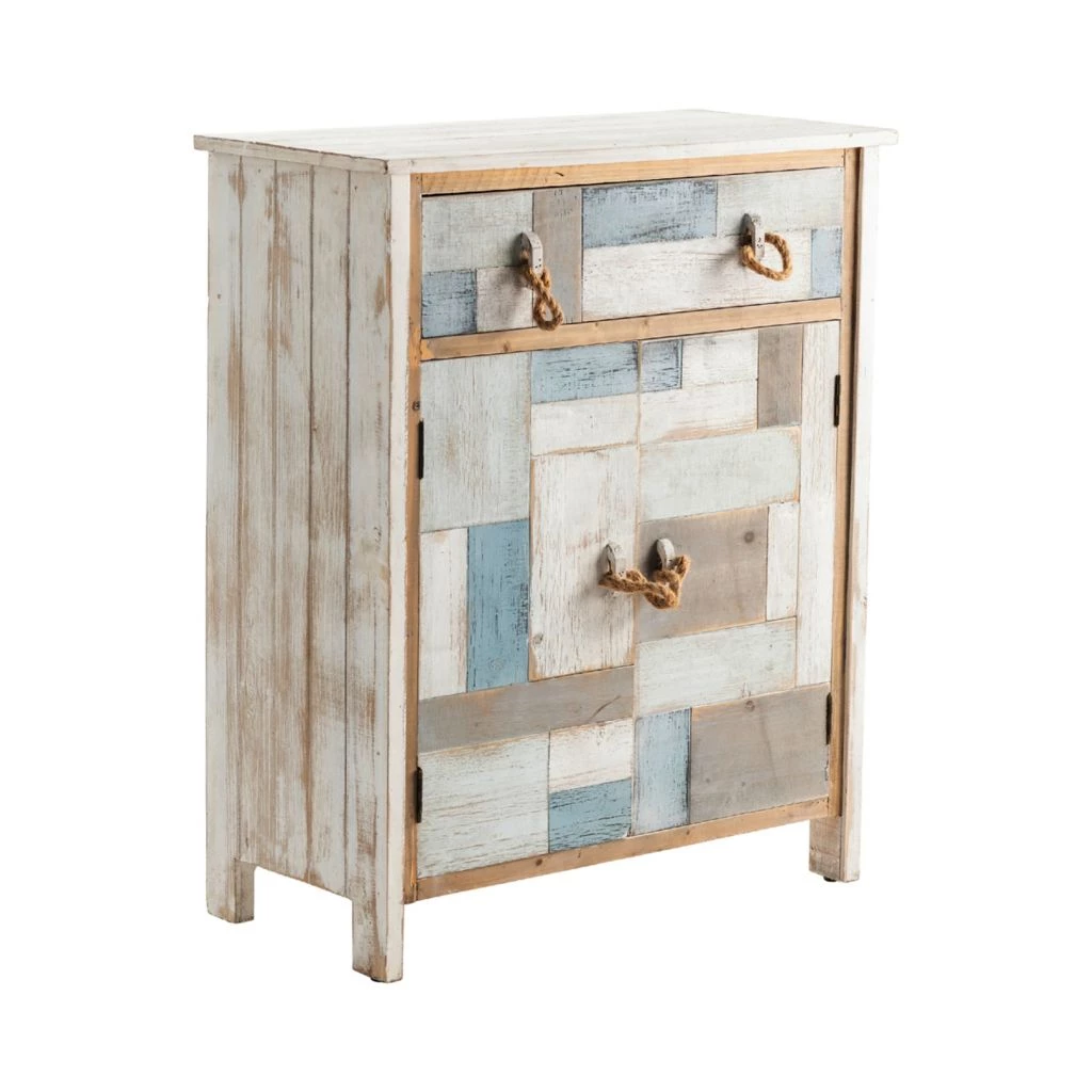 Crestview Collection South Shore Multi Color Nautical Patchwork 1 Drawer, 2 Door Cabinet, CVFZR3566