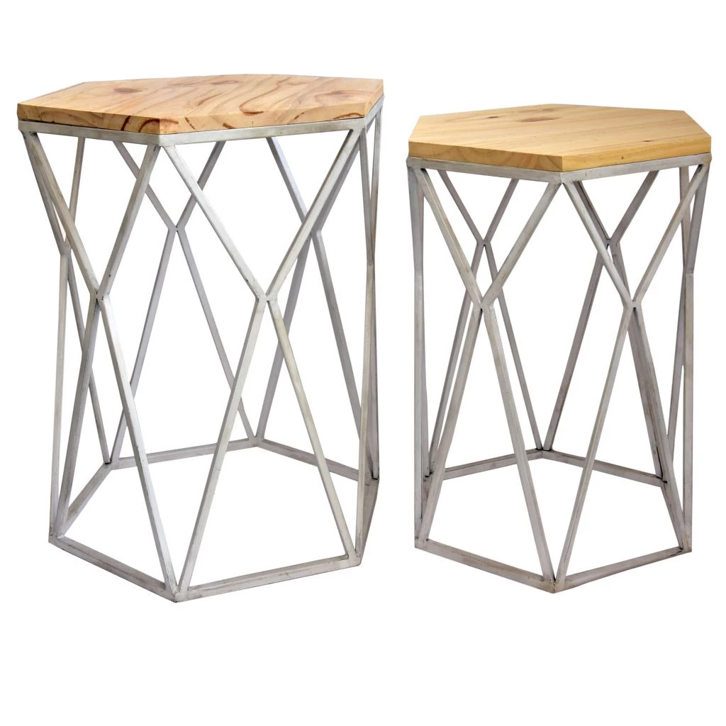 Crestview Collection St. Augustine Metal and Wood Tables, Set of 2, CVFNR5019