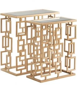 Crestview Collection Maddox Rectangle Champagne Metal and Mirror, Set of Tables, CVFZR3537