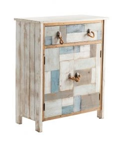Crestview Collection South Shore Multi Color Nautical Patchwork 1 Drawer, 2 Door Cabinet, CVFZR3566